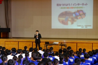 県メディア教育指導員の方を講師に迎え、 SNSの危険性について学びました。 |