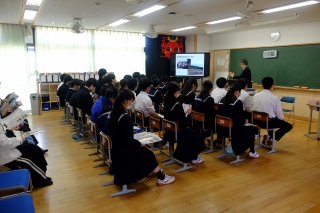 | 1・3年生は教科の授業を公開しました。2年生は「薬物乱用防止教室」を一緒に聴講しました。 | |