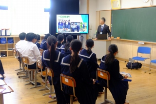 | 土曜日ですが、授業参観の関係で登校日。県立高校はお休みなので、卒業生の話を聞く機会をもちました。 | |