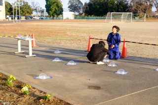| 心配された雨の影響もなく(風は強かった…)、グラウンドで交通安全教室が行われました。 | |