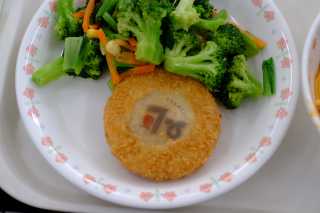 | 今日のコロッケは特製「東海村70周年記念コロッケ」です。みんなビックリ! | |