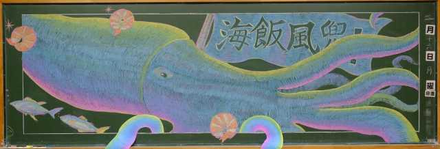 | 3年生の卒業を祝う「黒板ジャック」がありました。素晴らしい黒板アートができました。 |