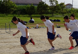 | 陸上部は、1年生11人、2年生2人、3年生15人 の計28人で活動しています。 陸上部の目標は全国大会で優勝することです。 平日は学校で、休日はスマイル東海で練習しています。 |